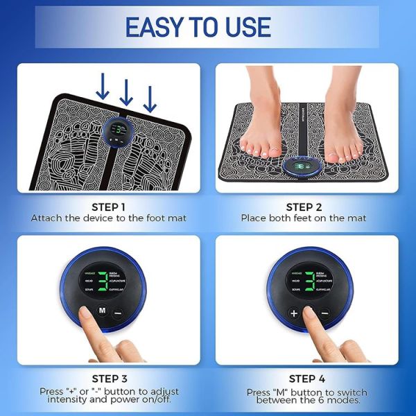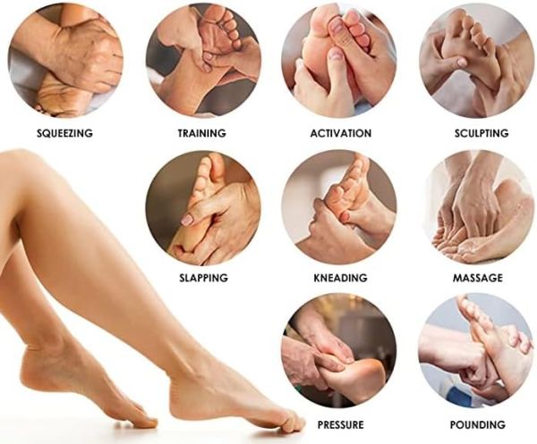Die EMS-Technologie wirkt durch die Stimulierung von Akupunkturpunkten an Füßen und Beinen und lindert so Muskelverspannungen und die angesammelte Müdigkeit, die durch unseren hektischen Lebensrhythmus entstanden ist. Egal, ob Sie den ganzen Tag in Stöckelschuhen verbracht haben, sich körperlich stark angestrengt haben oder ein sitzendes Leben führen, dieses elektro-stimulierende Massagegerät ist da, um Ihnen sofortige Erleichterung zu verschaffen.