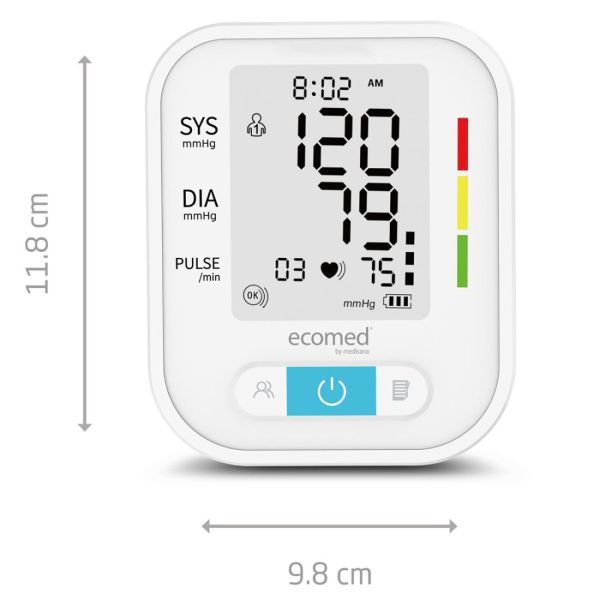 Das Oberarm-Blutdruckmessgerät Medisana ecomed ist für den gemeinsamen Gebrauch ausgelegt. Zwei Benutzer können jeweils 90 Messungen speichern und zusätzlich einen Durchschnittswert berechnen lassen. So lässt sich die Entwicklung des Blutdrucks über längere Zeit zuverlässig verfolgen – eine wertvolle Unterstützung für ärztliche Konsultationen.