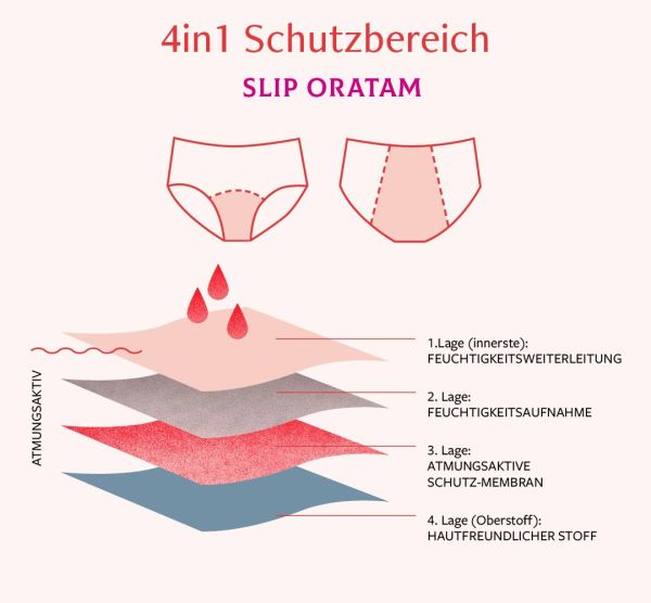 Die Oratam Menstruationsslips mit ihrer klassischen, gut ineinandergreifenden Form verbinden Komfort und Zuverlässigkeit.