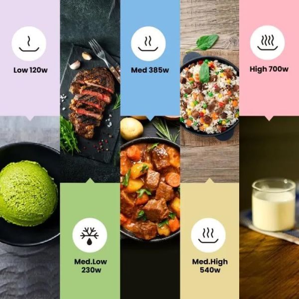 Mit fünf verschiedenen Leistungsstufen bietet Ihnen diese Mikrowelle eine außergewöhnliche Vielseitigkeit, mit der Sie das Kochen an Ihre speziellen Bedürfnisse anpassen können. Ob Sie ein Fertiggericht aufwärmen oder eine komplette Mahlzeit kochen, Sie können sich jedes Mal auf eine zuverlässige Leistung und gleichmäßige Ergebnisse verlassen.