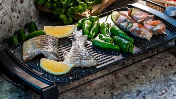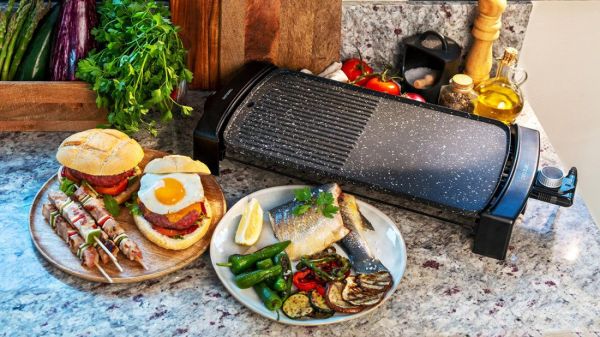 Die großzügige 45 x 25 cm große Garfläche kombiniert einen Grillbereich und eine Plancha-Zone, sodass Fleisch, Gemüse, Fisch, Meeresfrüchte, Eier oder sogar Crêpes problemlos zubereitet werden können. Perfekt, um abwechslungsreiche Mahlzeiten direkt am Tisch zu genießen.