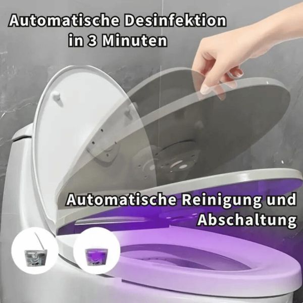 Diese kompakte UV-Lampe funktioniert so, dass sie die Toilette mithilfe von UV-Licht innerhalb von drei Minuten automatisch sterilisiert und reinigt.