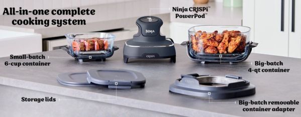 Die Ninja CRISPi ist für den mobilen Einsatz konzipiert: Ihre thermoresistenten Füße und Schutzauflagen am PowerPod erlauben den Betrieb auf jeder Oberfläche. Ob im Urlaub, im Büro oder in der kleinen Single-Küche – durch ihr modulares Design und die auslaufsicheren Deckel lässt sie sich problemlos transportieren und verstauen.