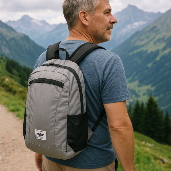 Wasserfest und robustes Material — ideal für den täglichen Gebrauch. Trotz des geringen Gewichts fühlt sich der 20 L-Rucksack solide an.
