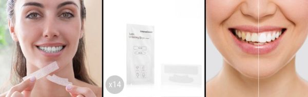 Diese Streifen mit Zahnaufhellungseffekt sind einfach zu verwenden, indem man die Anweisungen in der beiliegenden Anleitung befolgt. Sie sollten nicht sofort nach dem Zähneputzen verwendet werden, sondern mindestens 1 Stunde warten und die Zähne vor der Anwendung mit einem Papiertuch trocknen. Das Set besteht aus 14 Beuteln für 14 Behandlungen. Jeder Umschlag enthält 2 unterschiedlich geformte Streifen, einen Streifen für die Zähne des Oberkiefers und einen Streifen für den Unterkiefer.