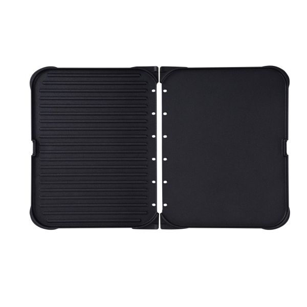 Unvergleichliche Vielseitigkeit:Mit den abnehmbaren Platten bietet dieser Grill eine großzügige Kochfläche von 46,8 x 29,3 cm, wobei jede Platte 23,4 x 29,3 cm misst. Sie haben die Wahl zwischen einer gerillten und einer glatten Platte, ideal für eine Vielzahl von Gerichten, von saftigen Grilladen bis hin zu fluffigen Pfannkuchen.