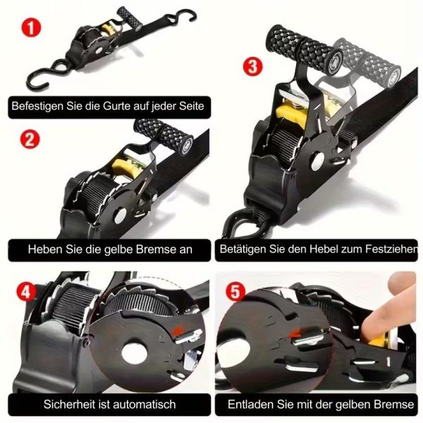 Dieser automatische professionelle Spanngurt wurde entwickelt, um die Zuverlässigkeit und Stabilität zu bieten, die sowohl für den alltäglichen Transport als auch für intensive Nutzung erforderlich sind.