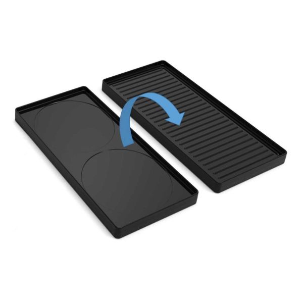 Das Gehäuse aus Edelstahl des Koenig-Grills sorgt nicht nur für außergewöhnliche Robustheit, sondern auch für ein modernes Design, das sich perfekt in jede Küche integriert. Die Grillplatte aus Gusseisen mit antihaftbeschichteter, wendbarer Oberfläche ist so konzipiert, dass sie eine gleichmäßige und problemlose Zubereitung bietet. Sie können zwischen einer glatten Oberfläche zum Braten von Zutaten oder einer gerillten Oberfläche für Grillgerichte wählen. Diese Antihaftbeschichtung erleichtert die Reinigung und sorgt bei jeder Verwendung für eine unkomplizierte Handhabung.