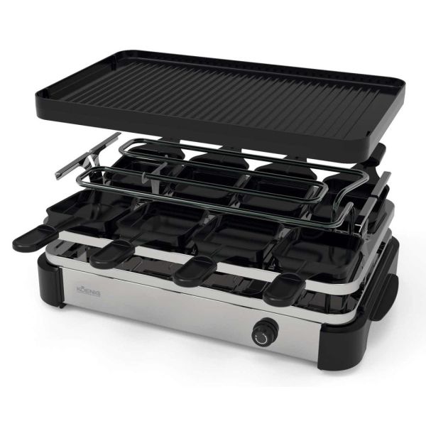 Versammeln Sie Ihre Liebsten zu geselligen und köstlichen Momenten mit dem Raclette-Grill Pro 8 Personen Koenig. Ideal für Raclette-Abende mit Freunden oder der Familie, kombiniert dieses hochwertige Gerät Leistung, elegantes Design und Benutzerfreundlichkeit. Mit seinen 8 Pfännchen kann jeder Gast seine Spezialitäten nach Belieben zubereiten, für ein individuelles und immer geschätztes Mahl. Perfekt für größere Tische, garantiert dieser Grill bei jeder Verwendung ein unvergessliches Erlebnis.