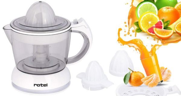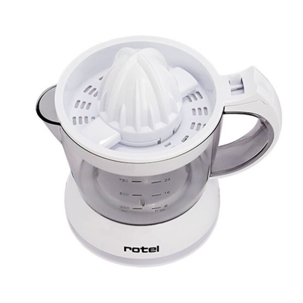 Der abnehmbare Krug der Rotel U467CH1 Zitruspresse fasst bis zu 0,75 Liter Flüssigkeit, so dass Sie genügend Saft für sich und Ihre Familie zubereiten können. Sie haben außerdem die Wahl zwischen zwei Kegelgrößen, sodass Sie die Zitruspresse an die Größe der Früchte anpassen können, die Sie auspressen möchten.