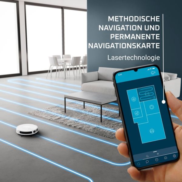 Mit einer starken Saugleistung von 2700 Pa kann der X-Plorer RR8477 selbst die hartnäckigsten Stäube, Tierhaare und Rückstände effektiv entfernen. Sein fortschrittliches Gyroskop-Navigationssystem sorgt in Verbindung mit intelligenten Sensoren dafür, dass jeder Raum optimal erfasst wird, während er Hindernissen flüssig ausweicht. Ihr Zuhause wird methodisch gereinigt, ohne auch nur einen Quadratzentimeter zu vergessen!