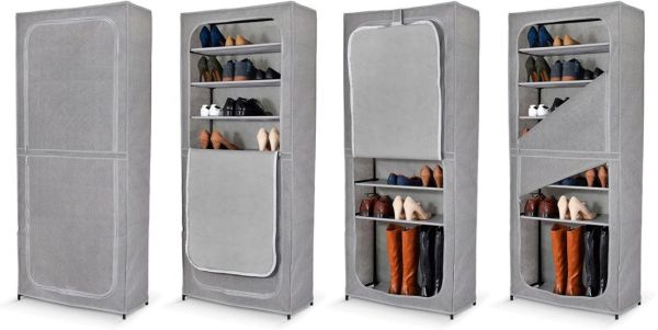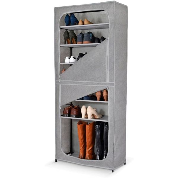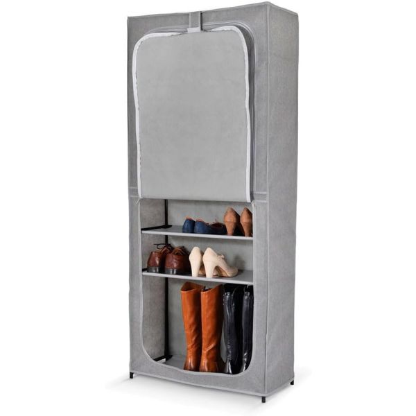 Das Möbelstück verfügt über eine solide, langlebige Struktur mit sieben großzügig angelegten Etagen, die Platz für eine Vielzahl von Schuhen, darunter auch Stiefel, bieten. Die schicke und zeitlose graue Stoffhülle bietet Ihren wertvollen Schuhen einen stilvollen Schutz und hält sie gleichzeitig von Staub und Schmutz fern.