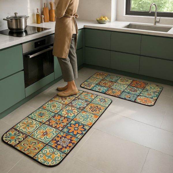 Ces tapis sont superbes et très confortables sous les pieds. Le design rétro apporte une touche chaleureuse à ma cuisine.