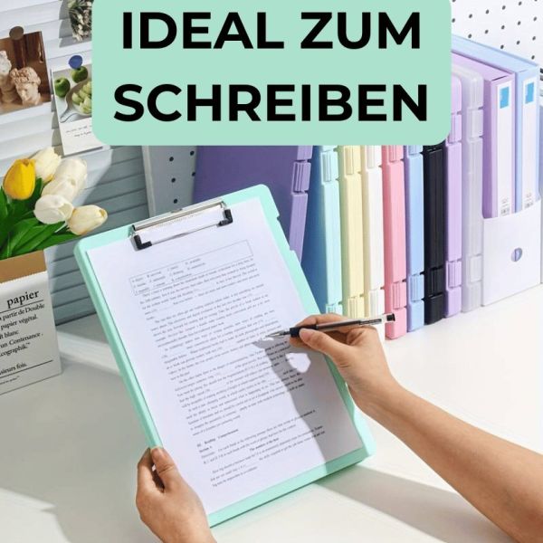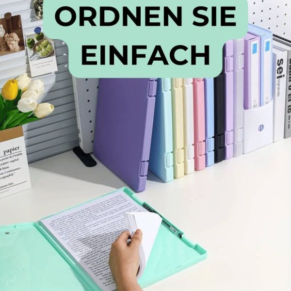 | Klemmbrett | Ein robustes Klemmsystem hält die Dokumente sicher an ihrem Platz und ermöglicht es, direkt auf die Mappe zu schreiben. |