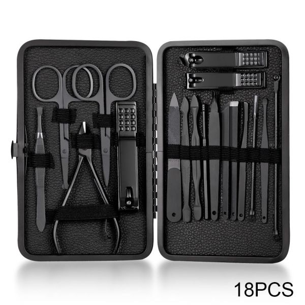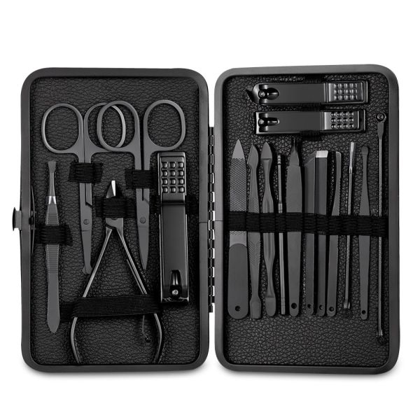 Gönnen Sie sich mit diesem klassischen schwarzen Maniküre- und Pediküre-Set ein Salonerlebnis für zu Hause. Dieses elegante Set wurde für die umfassende Pflege von Händen, Füßen und Gesicht entwickelt und enthält alles, was Sie benötigen, um ein gepflegtes und professionelles Erscheinungsbild aufrechtzuerhalten.