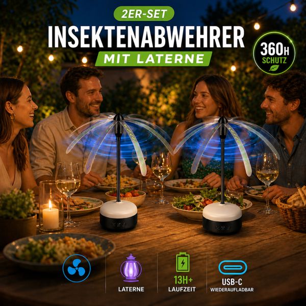 Genießen Sie Ihre Zeit im Freien in vollen Zügen mit diesem 2er-Set Insektenabwehr mit Laterne, das Komfort, Effizienz und Praktikabilität vereint. Dank ihres kompakten und modernen Designs fügen sich diese Geräte perfekt auf einem Tisch, einer Terrasse oder beim Camping ein. Die mobile Bauweise ermöglicht eine Nutzung sowohl im Innen- als auch im Außenbereich und bietet eine vielseitige Lösung, um lästige Insekten mühelos fernzuhalten.