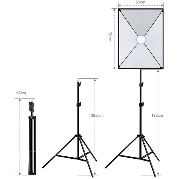 Die Softbox ist 50x70 cm groß und besteht aus einem professionellen reflektierenden Stoff aus Partikelsilber in Kombination mit einem weißen Nylonschirm, der hartes Licht weicher macht und Schatten eliminiert. Das einteilige Design ermöglicht ein einfaches Öffnen und Zusammenfalten, wodurch es leicht zu verwenden und zu verstauen ist.