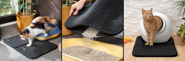 Diese faltbare Matte für Katzen ist ideal, um zu verhindern, dass der Boden mit Streu aus der Katzentoilette verschmutzt wird. Das im Inneren der Matte gesammelte Streu kann wiederverwendet und erneut in die Katzentoilette gegeben werden. Zur Reinigung können Sie einen Staubsauger verwenden und den Schmutz mit einem feuchten oder trockenen Tuch entfernen.