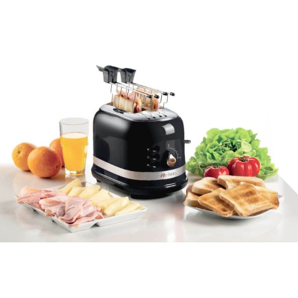 Beginnen Sie Ihren Tag mit dem Ariete 2-Slice Black Toaster, komplett mit seiner praktischen Zange. Dieser Toaster vereint Funktionalität und elegantes Design und verwandelt Ihren Morgen in Momente gastronomischen Vergnügens.