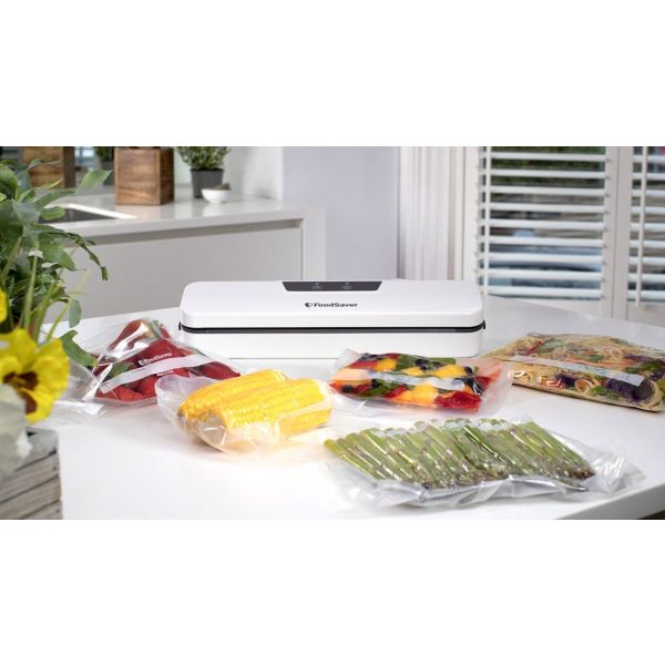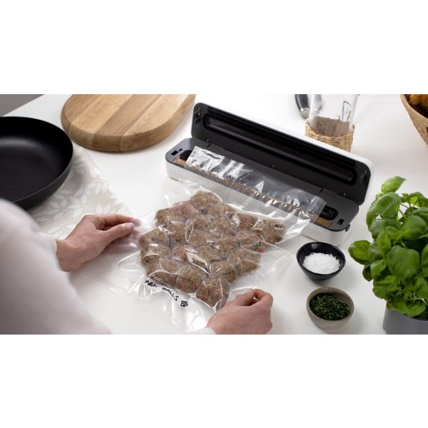 - Kompatibel mit 20 cm und 28 cm FoodSaver® Beuteln und Rollen.
