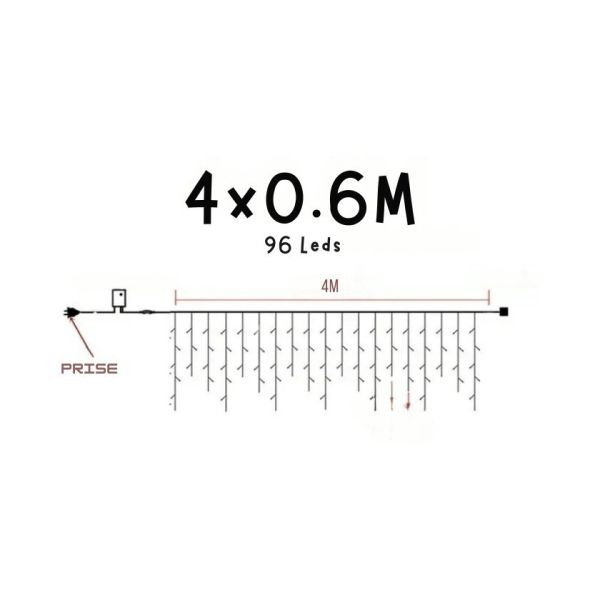 Diese Lichterkette in Form eines Eiszapfenvorhangs ist 4 m lang und 0,6 m breit und eignet sich perfekt, um Ihre Fenster, Wände oder Außenbereiche während der Feiertage zu verschönern.