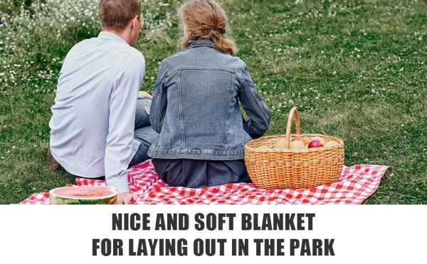 Dieser Teppich mit seinem Muster aus Quadraten ist perfekt, um ihn bequem zu einem Picknick oder an den Strand mitzunehmen.