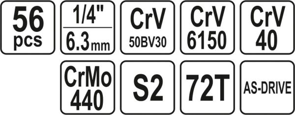 Jede Komponente wird präzise aus hochwertigen Materialien gefertigt, um eine zuverlässige Leistung und eine lange Lebensdauer zu gewährleisten. Die 1/4"-Steckschlüssel sind aus CRV 50BV30 Chrom-Vanadium-Stahl gefertigt und bieten eine außergewöhnliche Robustheit und Widerstandsfähigkeit.unter den anspruchsvollsten Bedingungen.