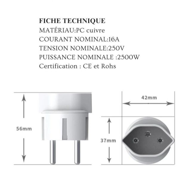 ✔ Matériaux de Qualité – Cuivre & polycarbonate robuste, supporte jusqu'à 2500 W.