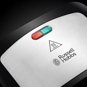 L'appareil à croque-monsieur est équipé de deux indicateurs lumineux pratiques : l'un rouge éclatant et l'autre vert vif vous permettant de voir quand l'appareil est sous tension et « prêt à cuire ».