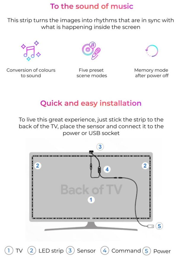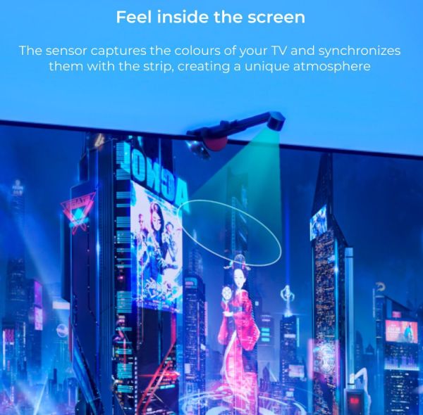 Le capteur AmbiGlow capte les couleurs de votre écran TV et les synchronise avec la bande LED pour émuler et afficher ces mêmes couleurs, créant ainsi une expérience immersive unique. Plongez dans l'ambiance de vos séries, films, sports et jeux vidéo préférés grâce à cette technologie révolutionnaire.