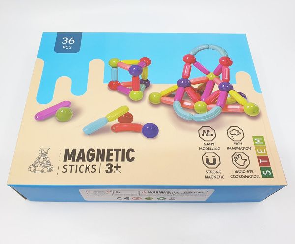 A partir de 3 ans, les bâtons de construction 36 pièces stimule la motricité fine, le développement sensoriel, la reconnaissance des formes et des couleurs, entraîne à compter et à trier.