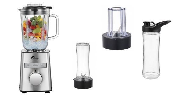 Il est livré avec deux accessoires : un blender portable d'une capacité de 600 ml et un broyeur pour moudre des ingrédients tels que des noix ou des épices.