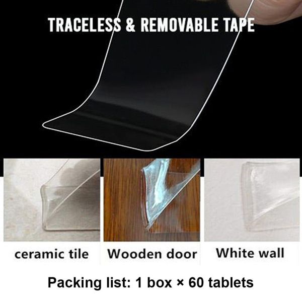 Boite 60 pièces adhésif double face extra fort réutilisable transparent