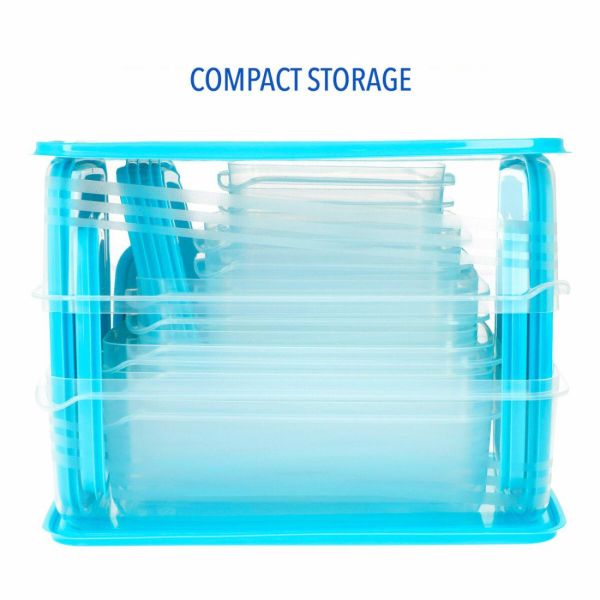Le design compact et empilable permet un rangement optimal dans les placards, le réfrigérateur ou le congélateur. Les boîtes s'emboîtent parfaitement les unes dans les autres, limitant l'encombrement tout en facilitant l'accès aux aliments. Cette conception est idéale pour les foyers qui veulent gagner de la place tout en conservant un espace de stockage bien organisé.