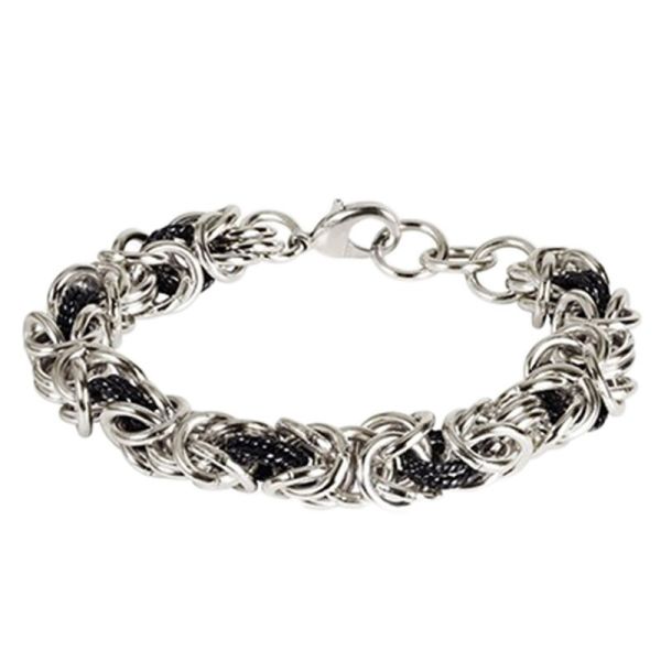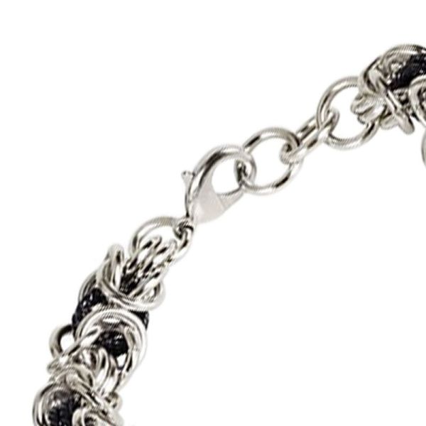 Un bracelet particulier avec un motif particulièrement élaboré et populaire : le motif de la chaîne royale ! Pour que le bracelet soit confortable à porter, il a été fabriqué en aluminium. Certains des luxueux maillons ont en outre été noircis, ce qui confère au bijou une touche d'extravagance.