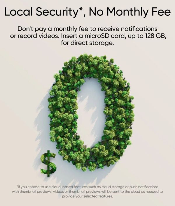 Profitez d'une sécurité locale sans aucun frais mensuels. Insérez une carte microSD jusqu'à 128 Go pour stocker vos enregistrements directement, sans dépendre d'un service cloud payant. Vous gardez le contrôle total de vos données, à tout moment.