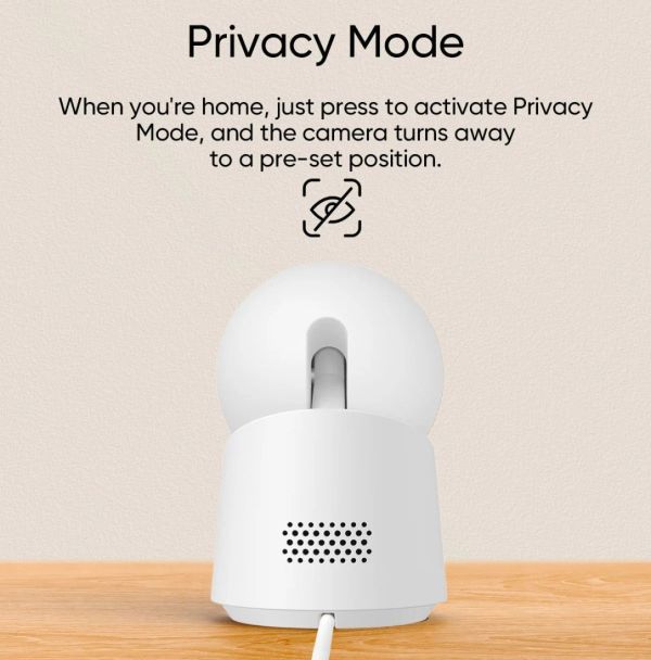 D'un simple appui, activez le mode Confidentialité : la caméra pivote vers une position pré-programmée et cesse d'enregistrer. Idéal pour préserver votre intimité dès que vous êtes chez vous, sans avoir à débrancher l'appareil.