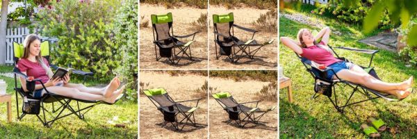 - Multifonction 2 en 1 : La chaise transat pliante est polyvalente et multifonction. Une chaise avec repose-pieds, une chaise de camping si vous retirez le repose-pieds à l'aide de la fermeture éclair cachée, une chaise longue si vous fixez le repose-pieds et abaissez le dossier au maximum. Elle dispose également d'un dossier réglable et d'un appui-tête pour plus de confort.