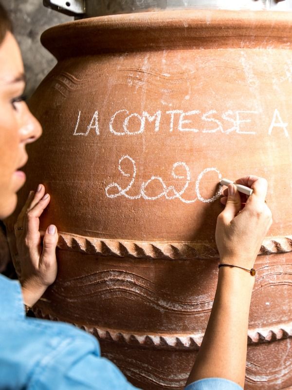 Élevage en Jarres de Terre Cuite & Fûts : Une méthode rare qui favorise une micro-oxygénation naturelle. La terre cuite préserve l'éclat du fruit et apporte une minéralité vibrante, tandis que le fût de chêne structure l'ensemble.