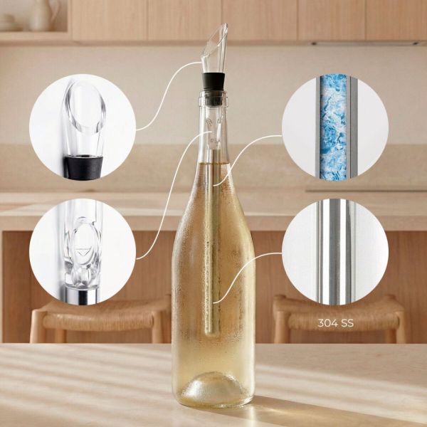 Grâce aux 2 tiges rafraîchissantes en acier inoxydable 304, profitez d'un vin à température idéale sans dilution. Après un passage au congélateur, elles maintiennent efficacement la fraîcheur pendant 1 à 2 heures, permettant de savourer chaque verre dans les meilleures conditions. Pratiques et réutilisables, elles se nettoient simplement à l'eau, offrant une solution rapide et efficace pour rafraîchir vos vins sans attendre.