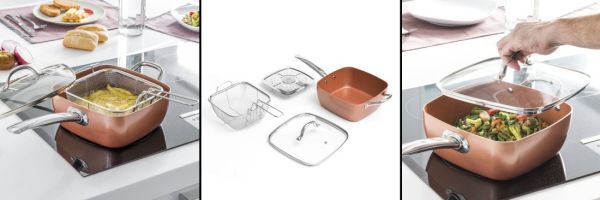 Mais ce n'est pas tout ! La poêle multifonctions est conçue pour s'adapter à votre mode de vie actif. Son panier intégré permet d'égoutter facilement les fritures après cuisson, vous offrant ainsi des plats savoureux sans l'excès de graisse. En un clin d'œil, elle se transforme d'une poêle anti-adhésive spacieuse en une friteuse pratique et économique, vous permettant ainsi de préparer une variété infinie de plats délicieux avec une seule et même poêle.
