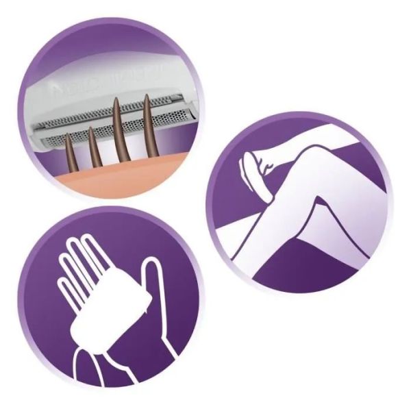 Le rasoir peut être utilisé humide ou sec, vous pouvez donc le prendre sous la douche. Quelle que soit la manière dont vous choisissez de l'utiliser, vous profiterez d'une peau magnifiquement lisse en un rien de temps.