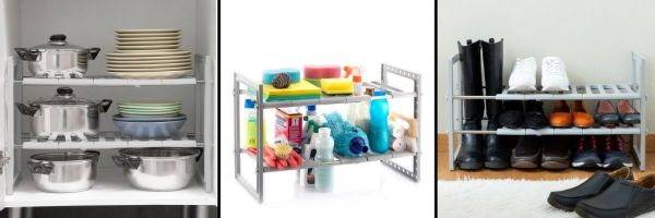 Cette étagère modulable et extensible est parfaite pour profiter au maximum de l'espace disponible sous l'évier de la cuisine, car elle vous permet de ranger et de garder en ordre une multitude d'articles et de produits de nettoyage. Dans la cuisine, elle est également extrêmement utile pour ranger des casseroles, des poêles et des poêles à frire, etc.