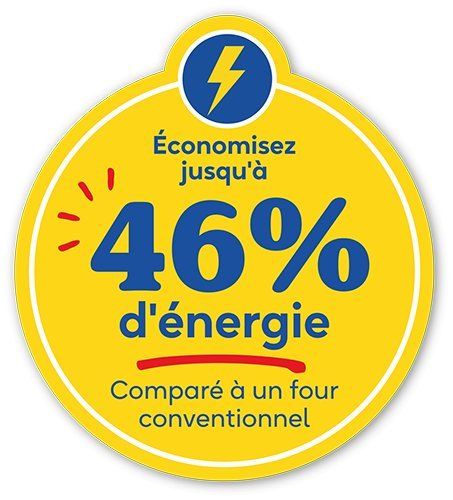 Le Satisfry Air Fryer Medium économise jusqu'à 46 % d'énergie comparé à un four conventionnel. La technologie Air Fry permet aux aliments de cuire plus rapidement, ce qui représente une alternative plus économique à la cuisson au four.