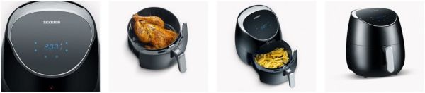 Cette friteuse sans graisse avec grand panier XXL d'une contenance d'environ 5 litres est idéale pour la préparation de plats variés, sains et rapides, sans huile ni graisse supplémentaire. Grâce à l'écran tactile intuitif, vous pouvez sélectionner un des 8 programmes automatiques et préparer des frites, de la viande, des légumes et de nombreux autres plats à une température entre 80 et 200 °C. Le revêtement céramique du panier et du porte-panier de cette friteuse sans graisse garantit une extrême résistance aux rayures et une action antiadhésive optimale.