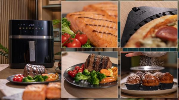 La Friteuse Air Fryer 8 L Cecofry & Grill est bien plus qu'une simple friteuse à air. Grâce à son design ingénieux, elle combine trois fonctions en un seul appareil : friteuse sans huile, gril à viande et plaque de cuisson pour pizzas. Cette polyvalence en fait un véritable allié culinaire, idéal pour préparer des repas variés et savoureux en toute simplicité.