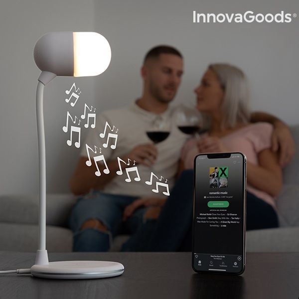 Elle fournit différentes lumières apaisantes. Elle est également un chargeur à induction pour smartphone et haut-parleur.