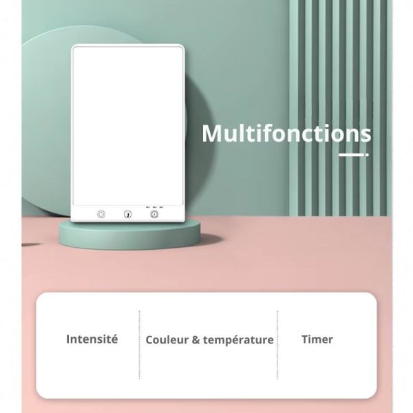 Avec ses 12 000 Lux, sa température de couleur réglable et ses 3 niveaux d'intensité, elle recrée une lumière douce et énergisante pour améliorer votre bien-être.