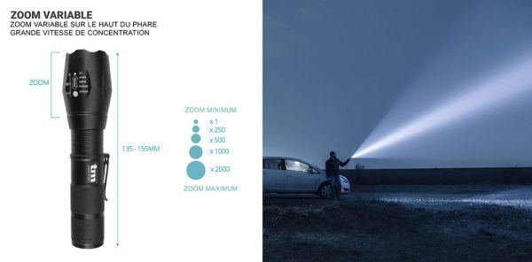 - 5 modes : haut, moyen, bas, stroboscopique et SOS