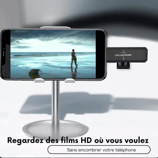 Compatible avec une large gamme de dispositifs grâce à l'interface USB et Type-C, il vous permet de visionner des films HD sans connexion internet et sans surcharger la mémoire de votre téléphone.